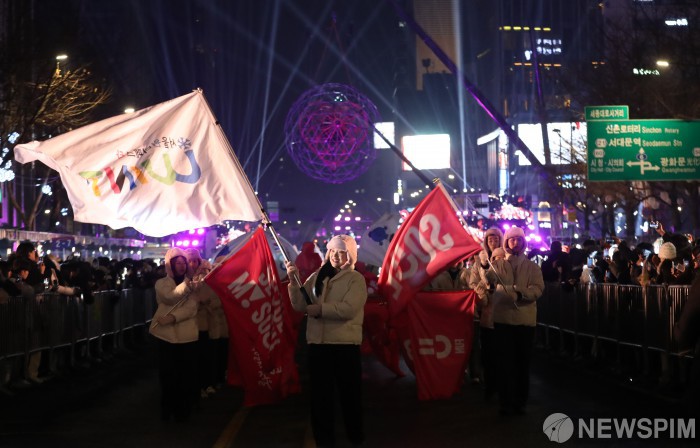 [서울=뉴스핌] 최지환 기자 = 2023년 마지막 날인 31일 오후 서울 종로구 세종대로에서 시민들이 '2023 제야의 종·새해맞이 카운트다운'을 관람하기 위해 모여있다. 2024.01.01 choipix16@newspim.com