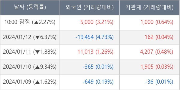 [표] 외국인ㆍ기관 순매매량 (단위 주)
