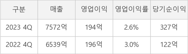 ◆ 4Q 실적, 매출액 7572억원 전년동기 대비 16% 증가... 영업이익 1.4% 감소