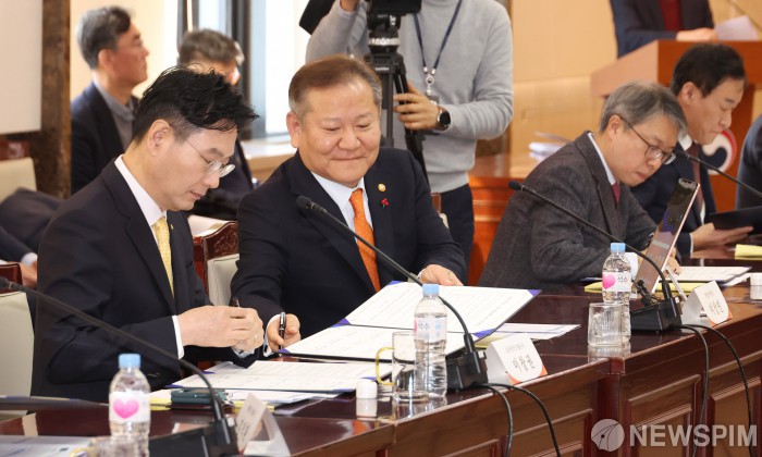[서울=뉴스핌] 김학선 기자 = 이상민 행정안전부 장관을 비롯해 카드사 대표들이 25일 정부서울청사에서 열린 착한가격업소 이용 활성화를 위한 업무협약식에서 협약서에 서명하고 있다. 이날 협약으로 착한가격업소에서 국내 9개 카드사 카드로 1만원 이상 카드결제 시 1회당 2000원 할인 혜택이 제공된다. 2024.01.25 yooksa@newspim.com