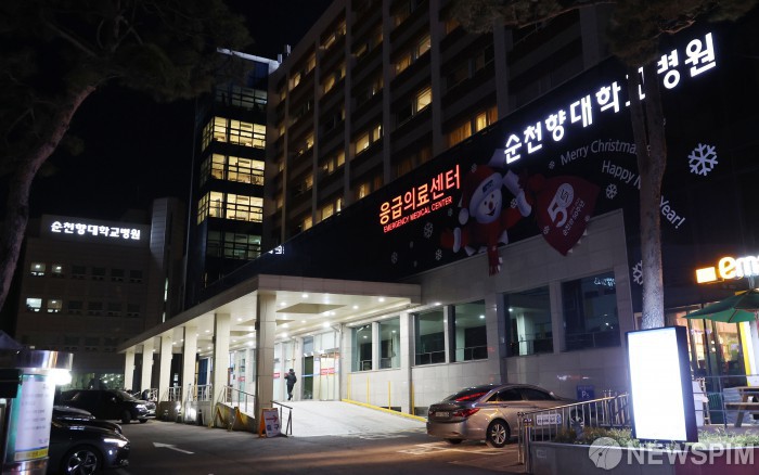[서울=뉴스핌] 이형석 기자 = 25일 오후 피습 당한 배현진 국민의힘 의원이 입원중인 서울 용산구 순천향대학교병원. 2024.01.25 leehs@newspim.com