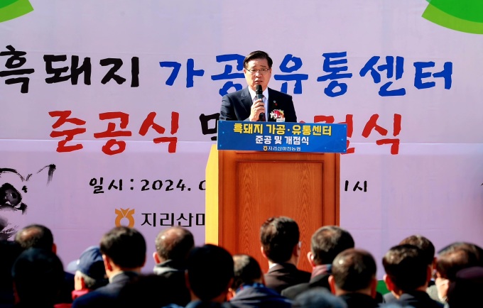 [함양=뉴스핌] 정철윤 기자 = 경남 함양군과 지리산마천농협은 2일 지리산 아래 마천면에서 함양 흑돼지의 가공·유통·판매를 책임질 함양흑돼지 가공유통센터 준공식을 개최했다고 밝혔다.