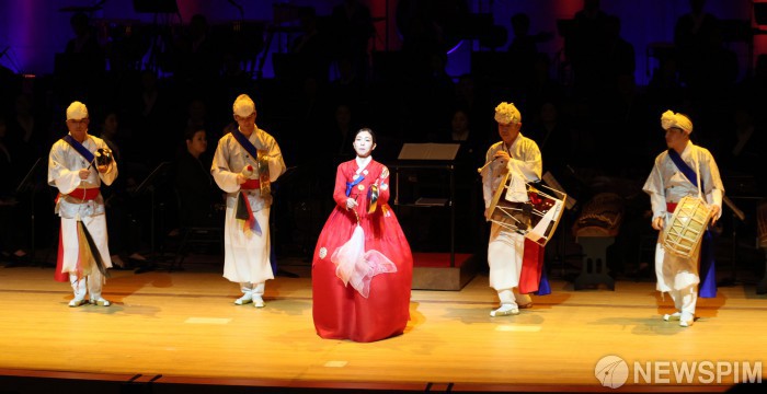 [서울=뉴스핌] 양윤모 기자 = '2024 설맞이 음악회 및 문화계 신년인사회'가 2일 오후 서울 중구 국립중앙극장 해오름극장에서 개최된 가운데 금회북춤이 공연되고 있다. 이자리에는 유인촌 문화체육관광부장관과 장미란 2차관을 비롯한 문화계인사 500여명이 참석했다. 2024.02.02 yym58@newspim.com