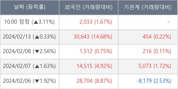 [표] 외국인ㆍ기관 순매매량 (단위 주)