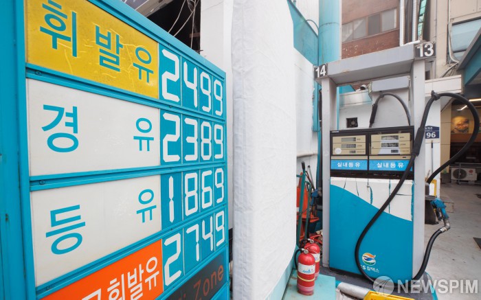 [서울=뉴스핌] 윤창빈 기자 = 국내 주유소 기름값이 4주째 오름세를 이어가고 있다. 24일 한국석유공가 유가정보시스템 오피넷에 따르면, 2월 셋째 주 전국 주유소의 휘발유 평균 판매가는 직전 주보다 리터 당 17.6원 오른 1627.5원이다. 사진은 이날 서울의 한 주유소의 모습. 2024.02.24 pangbin@newspim.com
