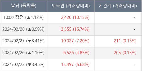 [표] 외국인ㆍ기관 순매매량 (단위 주)
