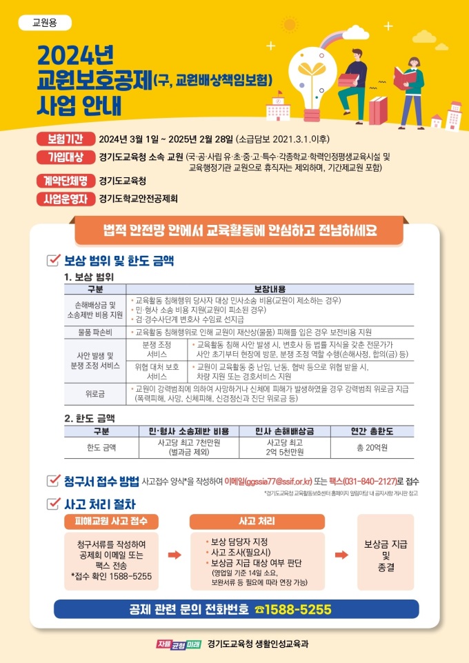 | 2024 교원보호공제 사업 안내 포스터. [사진=경기도교육청] |