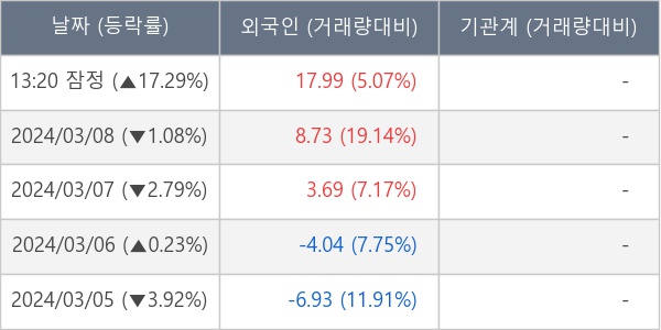 [표] 외국인ㆍ기관 순매매량 (단위 만주)