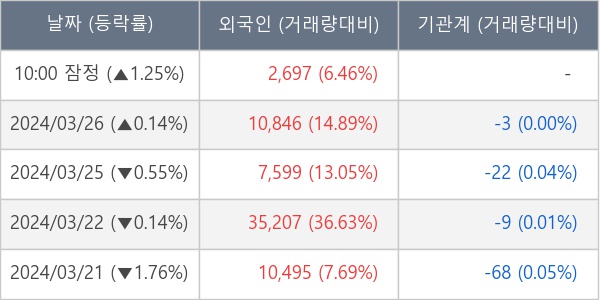 [표] 외국인ㆍ기관 순매매량 (단위 주)