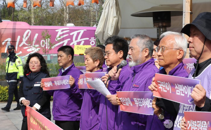 [서울=뉴스핌] 최지환 기자 = 이정민 이태원 참사 유가족협의회 운영위원장이 4일 오전 서울 중구 서울시청 앞에서 '10.29 이태원 참사, 정부는 없었다! 진실대행진' 출발을 알리는 기자회견에서 발언하고 있다. 2024.04.04 choipix16@newspim.com