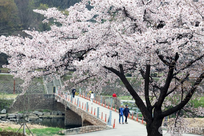 [서울=뉴스핌] 양윤모 기자 = 4월의 첫 휴일인 6일 성남시 분당구 탄천을 찾은 시민들이 지난해보다 늦게 개화한 벚꽃을 즐기며 시간을 보내고 있다. 2024.04.06 yym58@newspim.com