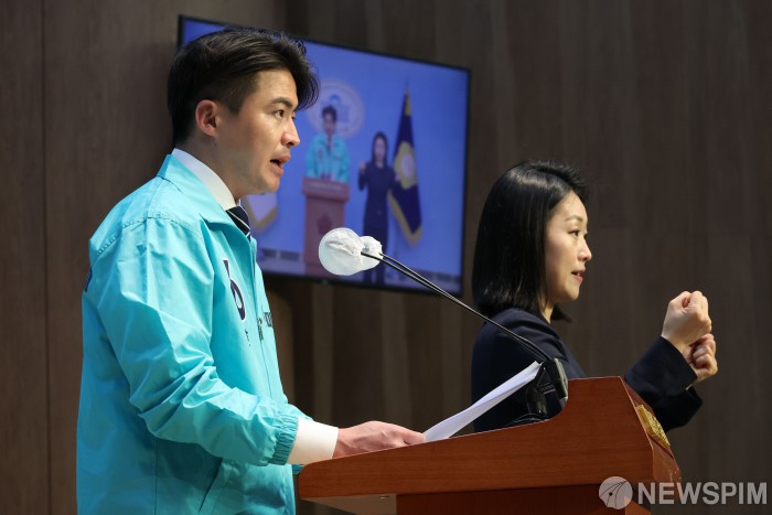 [서울=뉴스핌] 이형석 기자 = 오영환 새로운미래 총괄상임선대위원장이 9일 오전 서울 여의도 국회 소통관에서 제22대 총선 지지호소 기자회견을 열고 있다. 2024.04.09 leehs@newspim.com