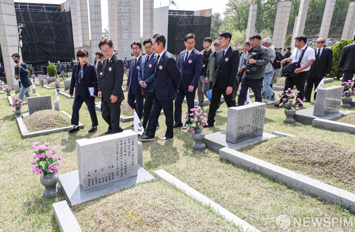 4.19혁명 기념식후 민주묘지 방문한 이재명 대표