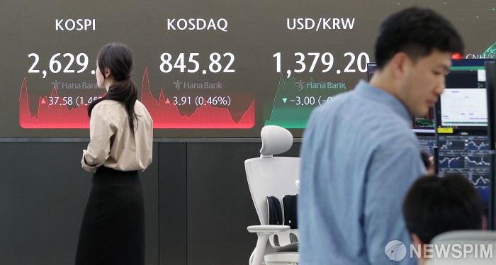 [서울=뉴스핌] 정일구 기자 = 22일 코스피 지수가 전 거래일보다 37.58포인트(1.45%) 상승한 2629.44에 마감했다. 코스닥 지수는 전 거래일대비 3.91포인트(0.46%) 오른 845.82에 종료했다. 원·달러 환율은 전 거래일보다 3.0원 내린 1379.2원에 장을 마쳤다. 이날 오후 서울 중구 하나은행 딜링룸에서 딜러들이 업무를 보고 있다. 2024.04.22 mironj19@newspim.com
