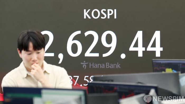 [서울=뉴스핌] 정일구 기자 = 22일 코스피 지수가 전 거래일보다 37.58포인트(1.45%) 상승한 2629.44에 마감했다. 코스닥 지수는 전 거래일대비 3.91포인트(0.46%) 오른 845.82에 종료했다. 원·달러 환율은 전 거래일보다 3.0원 내린 1379.2원에 장을 마쳤다. 이날 오후 서울 중구 하나은행 딜링룸에서 딜러들이 업무를 보고 있다. 2024.04.22 mironj19@newspim.com