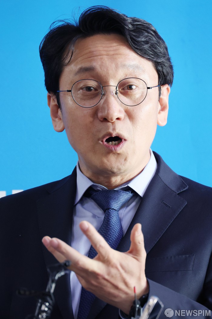 [서울=뉴스핌] 이형석 기자 = 천준호 더불어민주당 대표 비서실장이 25일 오후 서울 여의도 국회에서 영수회담 2차 실무회동 브리핑을 하고 있다. 2024.04.25 leehs@newspim.com