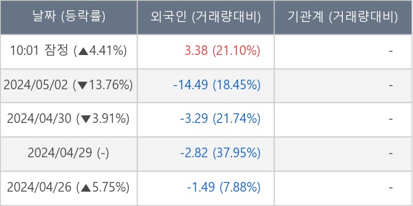 [표] 외국인ㆍ기관 순매매량 (단위 만주)
