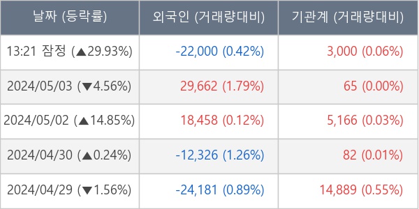 ※ 사모펀드 등 일부 기관의 순매매량은 표시되지 않음