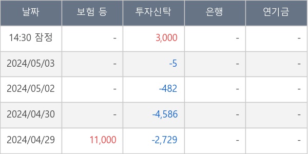 [표] 주요 기관별 순매매량 (단위 주)