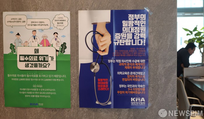 [서울=뉴스핌] 김학선 기자 = 법원이 의대생·전공의·교수 등이 낸 의대 증원 집행정지 신청을 기각하면서 의료계 반발이 이어지고 있다. 사진은 18일 대한의사협회의 모습. 2024.05.18 yooksa@newspim.com