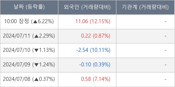 [표] 외국인ㆍ기관 순매매량 (단위 만주)