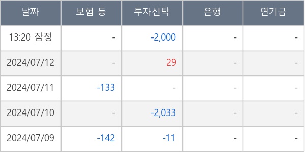 ※ 장중 매매동향은 잠정치이므로 실제 매매동향과 차이가 발생할수 있음
