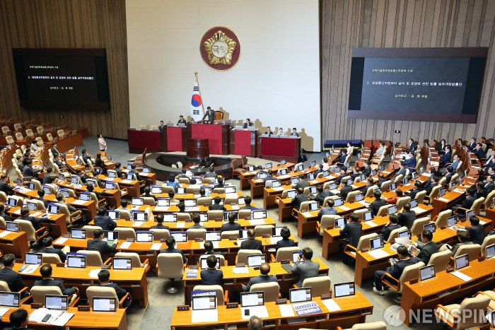 [서울=뉴스핌] 이형석 기자 = 우원식 국회의장이 25일 오후 서울 여의도 국회에서 열린 제416회 국회(임시회) 제01차 본회의에서 방송통신위원회의 설치 및 운영에 관한 법률 일부개정법률안을 상정하고 있다. 국민의힘은 해당 법률안에 대한 무제한 토론을 신청했다. 2024.07.25 leehs@newspim.com
