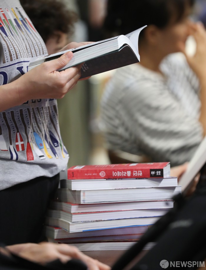 [서울=뉴스핌] 최지환 기자 = 연일 폭염이 이어지는 5일 오후 서울 종로구 교보문고에서 시민들이 독서를 하고 있다. 2024.08.05 choipix16@newspim.com