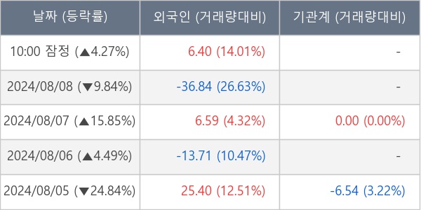 [표] 외국인ㆍ기관 순매매량 (단위 만주)