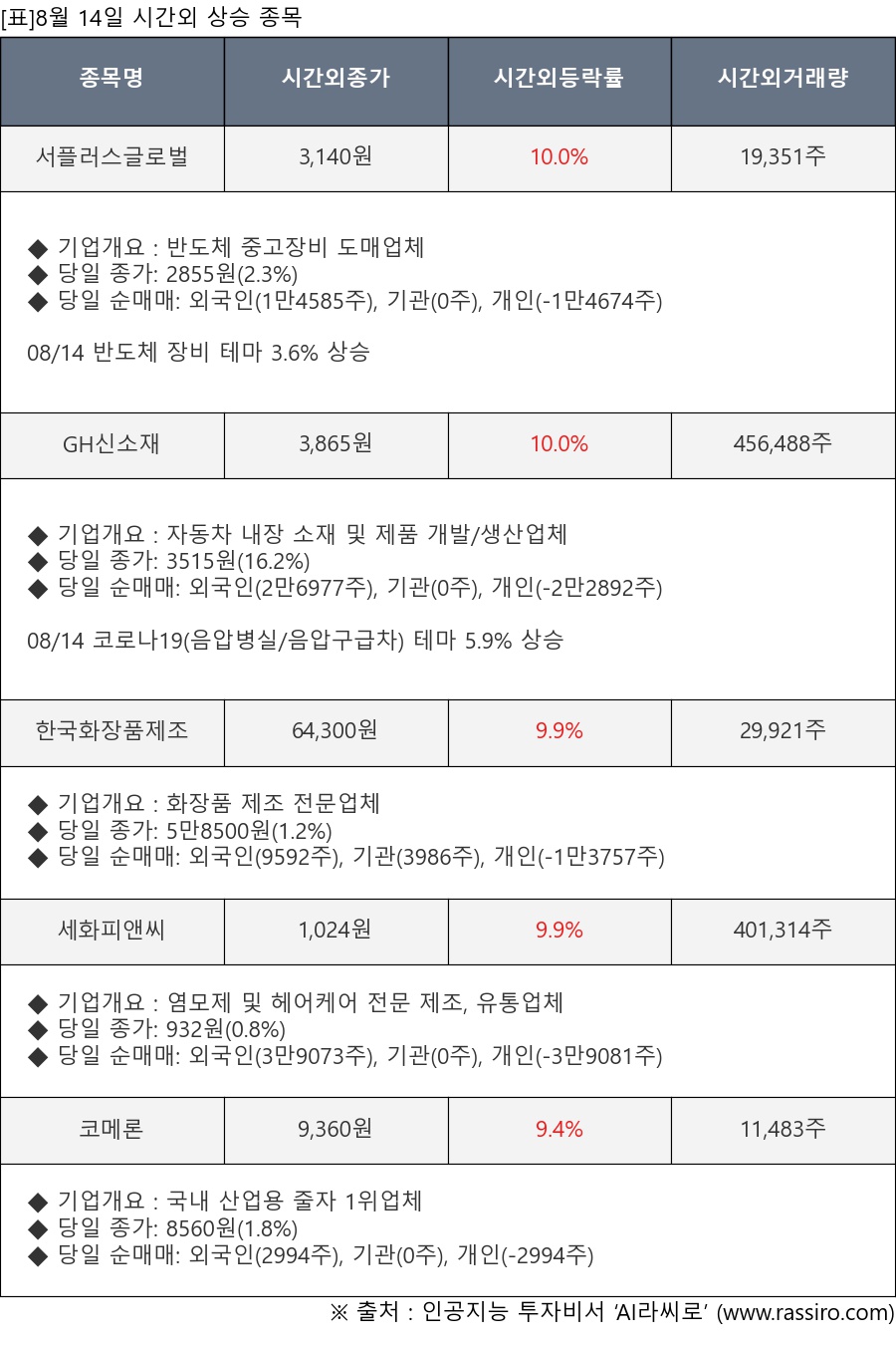 ※ 관련 종목: 서플러스글로벌, GH신소재, 한국화장품제조, 세화피앤씨, 코메론