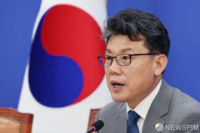 [서울=뉴스핌] 이형석 기자 = 진성준 더불어민주당 정책위의장이 16일 오전 서울 여의도 국회에서 열린 2023회계연도 결산 심사 관련 기자간담회에서 발언을 하고 있다. 2024.08.16 leehs@newspim.com