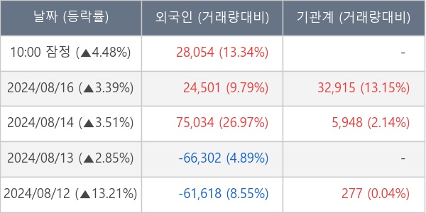 [표] 외국인ㆍ기관 순매매량 (단위 주)