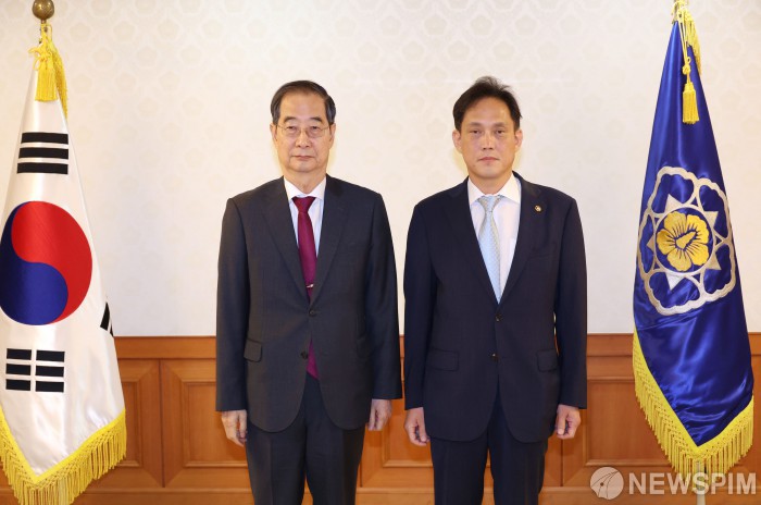 [서울=뉴스핌] 김학선 기자 = 한덕수 국무총리가 21일 정부서울청사에서 열린 차관급 임명장 수여식에서 김태규 방송통신위원회 상임위원에게 임명장을 전수한 뒤 기념촬영을 하고 있다. 2024.08.21 yooksa@newspim.com