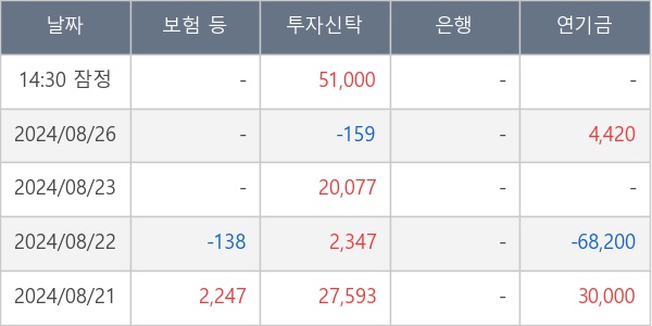 ※ 사모펀드 등 일부 기관의 순매매량은 표시되지 않음