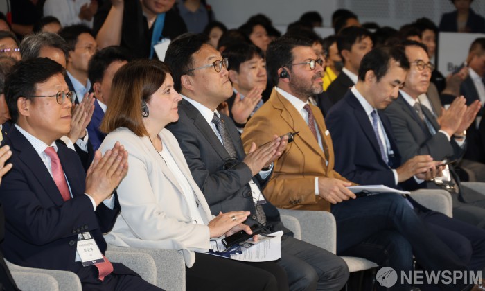 [서울=뉴스핌] 양윤모 기자 = 김병환 금융위원장이 27일 오전 동대문디자인플라자(DDP)에서 개최된 '코리아 핀테크 위크 2024' 개막 행사에 참석 박수치고 있다. 금융 산업에 새로운 활력을 불어넣기 위해 금융위원회가 '핀테크와 인공지능, 금융의 미래를 열다'를 주제로 27일부터 29일까지 개최하는 이번 행사는 금융 분야 AI 활용, 핀테크 쇼케이스, 핀테크 투자, 핀테크 토크 콘서트, 인슈어테크, 보안, 블록체인 등 다양한 금융 기술 트렌드가 펼쳐진다. 2024.08.27 yym58@newspim.com
