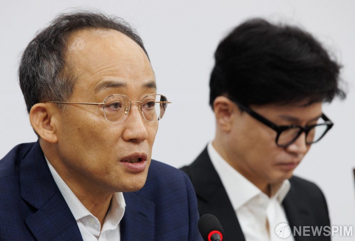[서울=뉴스핌] 윤창빈 기자 = 추경호 국민의힘 원내대표가 29일 오전 서울 여의도 국회에서 열린 최고위원회의에서 모두발언을 하고 있다. 2024.08.29 pangbin@newspim.com