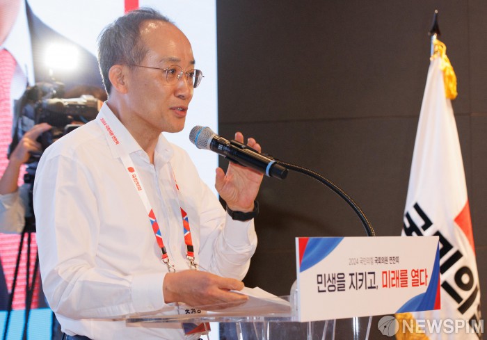 [인천=뉴스핌] 윤창빈 기자 = 추경호 국민의힘 원내대표가 29일 오후 인천 중구 인천국제공항공사 인재개발원에서 열린 2024 국민의힘 국회의원 연찬회에서 개회사를 하고 있다. 2024.08.29 pangbin@newspim.com