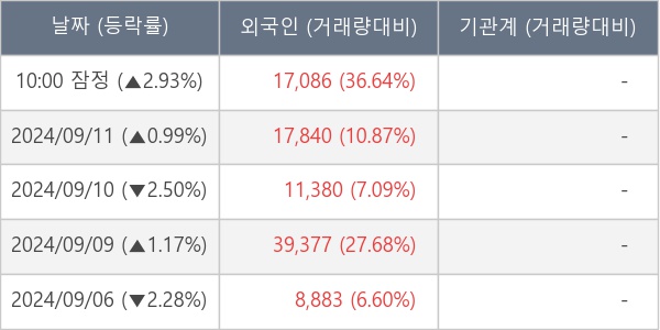 [표] 외국인ㆍ기관 순매매량 (단위 주)