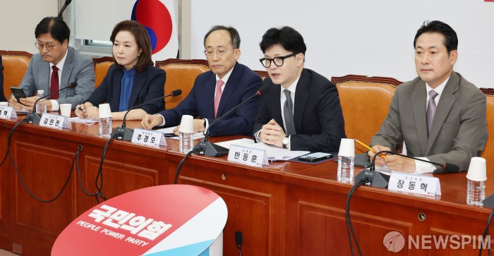 [서울=뉴스핌] 이형석 기자 = 한동훈 국민의힘 대표가 19일 오전 서울 여의도 국회에서 열린 최고위원회의에서 모두 발언을 하고 있다. 2024.09.19 leehs@newspim.com