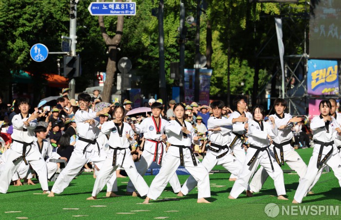 [서울=뉴스핌] 양윤모 기자 =서울 노원구(구청장 오승록)가 29일 노해로 일대에서 '2024 댄싱노원 거리 페스티벌'을 개최했다. 올해로 2회째에 접어든 '2024 댄싱노원'은 전 연령층이 함께 즐길 수 있도록 행사장을 ▲퍼레이드 존 ▲댄싱 테마 존 ▲가족 테마 존으로 나누어 짜임새 있게 구성했다. 댄싱노원의 핵심 콘텐츠인 퍼레이드 경연에 참가한 ▲지역 내 실버팀 ▲아동‧청소년팀 ▲대학‧일반팀 등 37팀이 노래에 맞춰 댄스, 무용, 무술, 타악, 힙합 등 다양한 종목을 선보였으며 팀마다 개성을 살린 퍼포먼스로 관람객들에게 큰 박수를 받았다. [사진=노원구청] 2024.09.30 yym58@newspim.com
