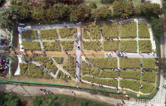 [서울=뉴스핌] 축제의 계절 가을을 맞아 6일 완주군 고산자연휴양림 일대에서 열린 ‘제12회 완주 와일드 앤 로컬 푸드 축제’를 찾은 많은 방문객들이 메뚜기 잡기 체험을 즐기고 있다. [사진=완주군청] 2024.10.06 yym58@newspim.com