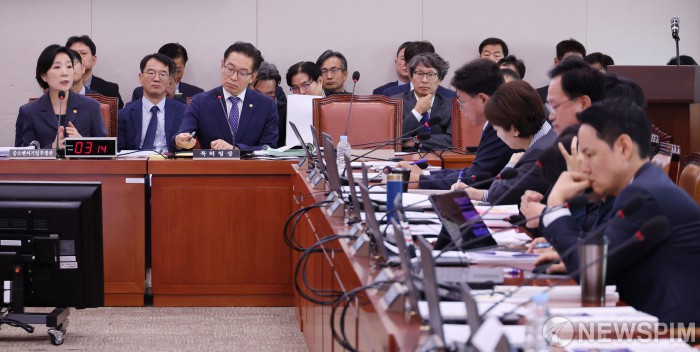 [서울=뉴스핌] 이형석 기자 = 오영주 중소벤처기업부 장관이 8일 오전 서울 여의도 국회에서 열린 산업통상자원중소벤처기업위원회의 중소벤처기업부, 특허청, 한국발명진흥회, 한국지식재산연구원, 한국지식재산보호원 등 국정감사에서 질의에 답하고 있다. 2024.10.08 leehs@newspim.com