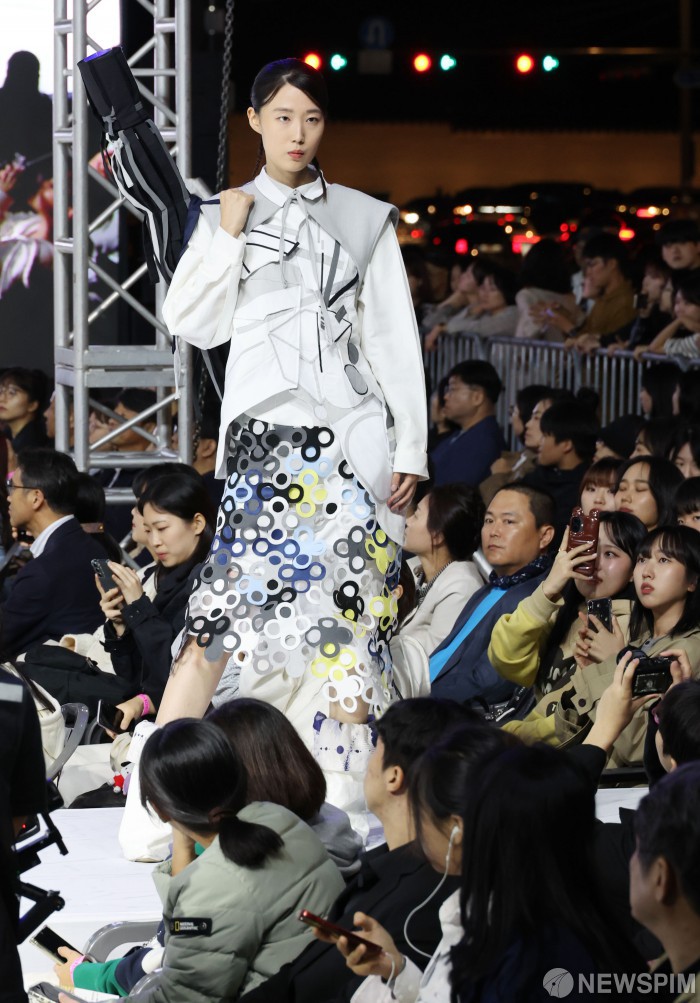 [서울=뉴스핌] 김학선 기자 = 8일 저녁 서울 광화문 광장에서 대학생 패션 인큐베이팅 프로그램 '2024 상상패션런웨이'가 진행되고 있다. '상상 패션런웨이'는 대학생 디자이너와 모델에게 패션쇼에 설 수 있는 기회를 제공하는 프로그램이다. 봉제산업과의 협업을 통한 지역산업 활성화를 위해 지난 2017년 시작해 올해 8년째를 맞이했다. 2024.10.08 yooksa@newspim.com