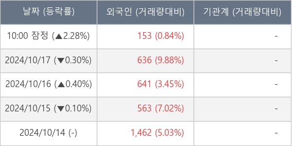 [표] 외국인ㆍ기관 순매매량 (단위 주)