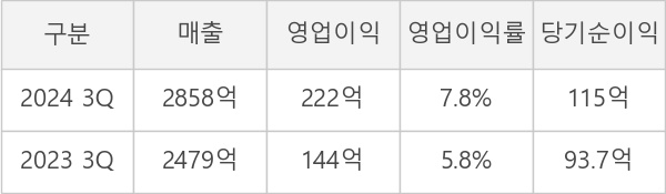 ◆ 전년동기 대비 매출 15%↑, 영업이익 53%↑... 영업이익률 3분기째 상승