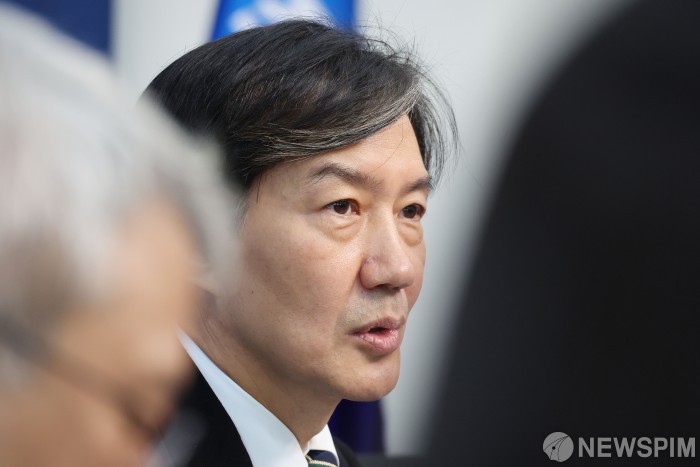 [서울=뉴스핌] 이형석 기자 = 조국 조국혁신당 대표가 28일 오전 서울 여의도 국회에서 취임 100일 기자 간담회를 열고 있다. 2024.10.28 leehs@newspim.com