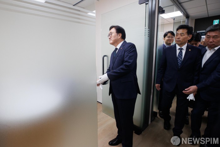 [서울=뉴스핌] 윤창빈 기자 = 우원식 국회의장이 28일 오전 서울 여의도 국회 의원회관에서 열린 국회 마음건강센터 개소식에서 시설을 둘러보고 있다. 2024.10.28 pangbin@newspim.com