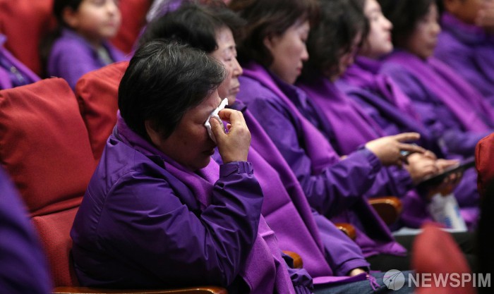 [서울=뉴스핌] 윤창빈 기자 = 29일 국회에서 열린 10·29 이태원참사 2주기 추모식에서 유가족들이 눈물을 흘리고 있다. 2024.10.29 pangbin@newspim.com