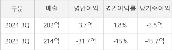 ◆ 3Q, 매출 202억 전년동기 대비 5.8% 감소... 영업이익률 상승전환
