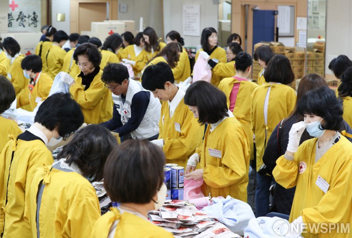 [서울=뉴스핌] 최지환 기자 = 20일 오전 서울 중구 대한적십자사 서울사무소 여성봉사특별자문위원회와 수요봉사회 봉사단들이 2024 사랑의 선물을 제작하고 있다. 대한적십자사는 방한용품과 생활용품 등 11종을 담은 3000세트의 사랑의 선물을 취약계층 어르신에게 전달할 예정이다. 2024.11.20 choipix16@newspim.com